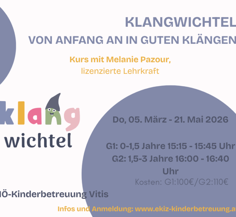 Klangwichtel – Von Anfang an in guten Klängen Gruppe 1 (0-1,5 Jahre) Kurs mit Melanie Pazour, lizenzierte Lehrkraft